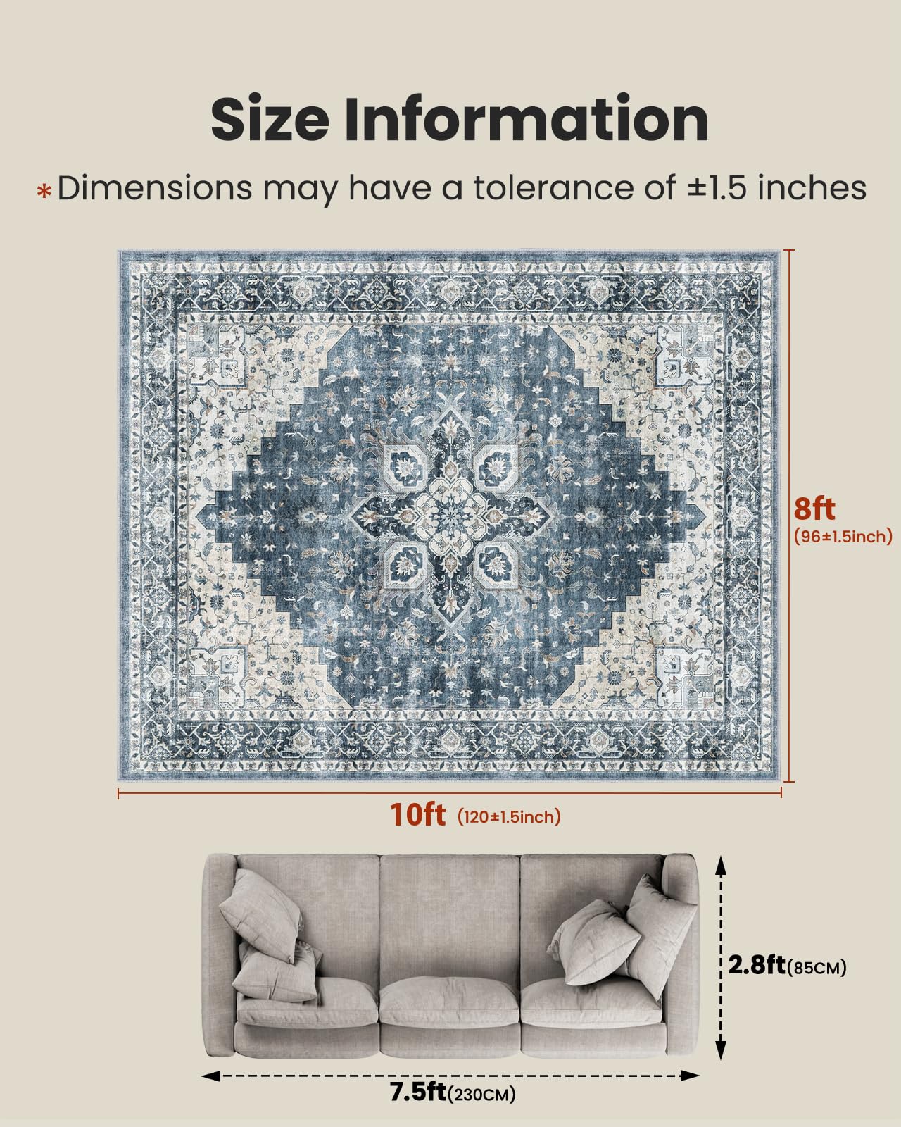 - Non-Slip Backing: 8×10 rugs for living room feature a non-slip backing to keep it securely in place, even on smooth surfaces like tile or wood. With a rug that stays flat without shifting or moving, you can enjoy a stable flooring surface and peace of mind, perfect for busy families with kids or pets.