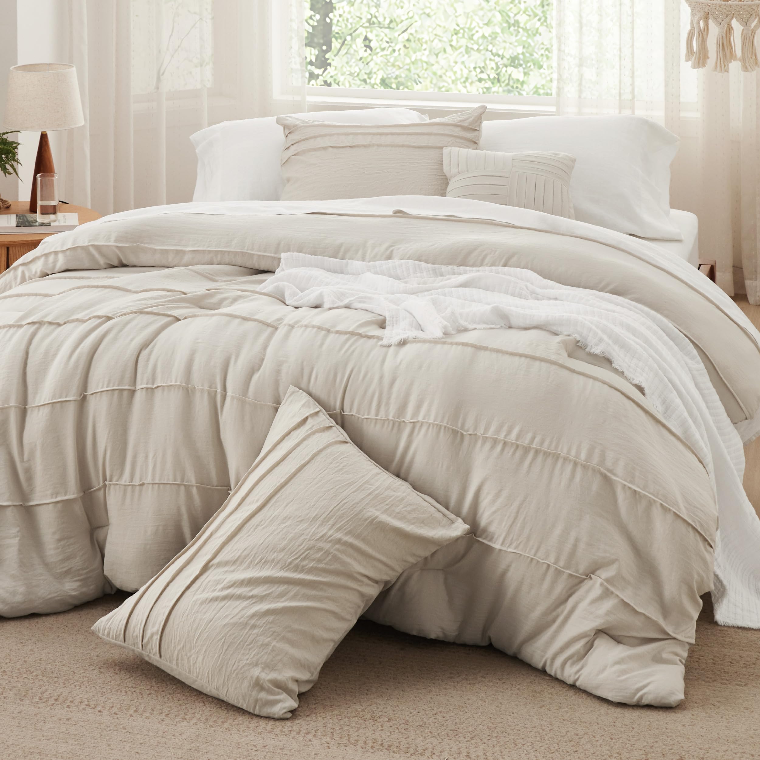 - Elegant Home Decor: This Bedsure comforter set, a great option for gifts for her, combines an exquisite pinch pleat design with a stripe pattern, adding sophisticated style to any sleeping space and making it a thoughtful gift.