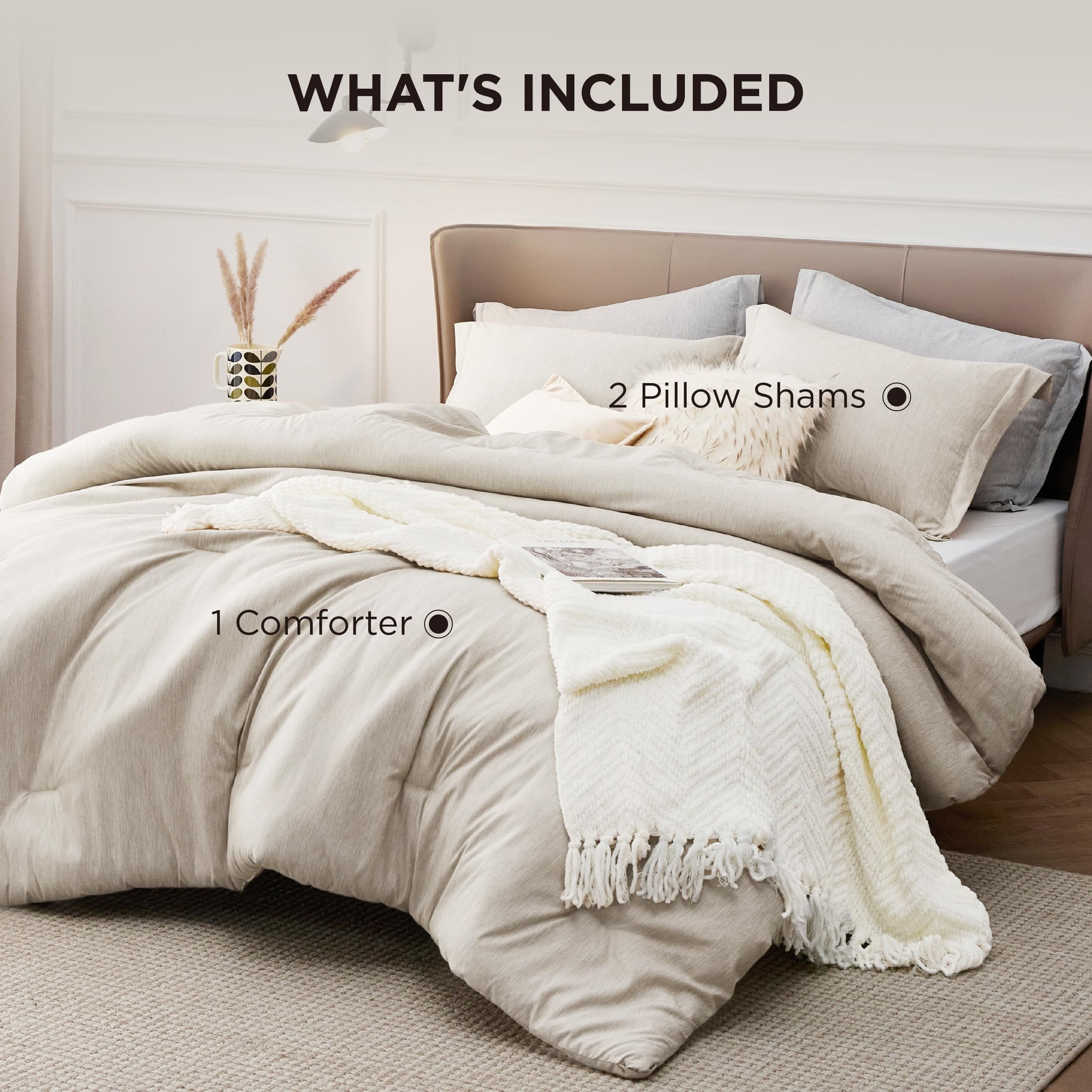 Bedsure Queen Comforter Set – Beige Soft Bedding for All Seasons, Cationic Dyed Bed Set, 3 Pieces, 1 Queen Size Comforter (90″x90″) and 2 Pillow Shams (20″x26″+2″)