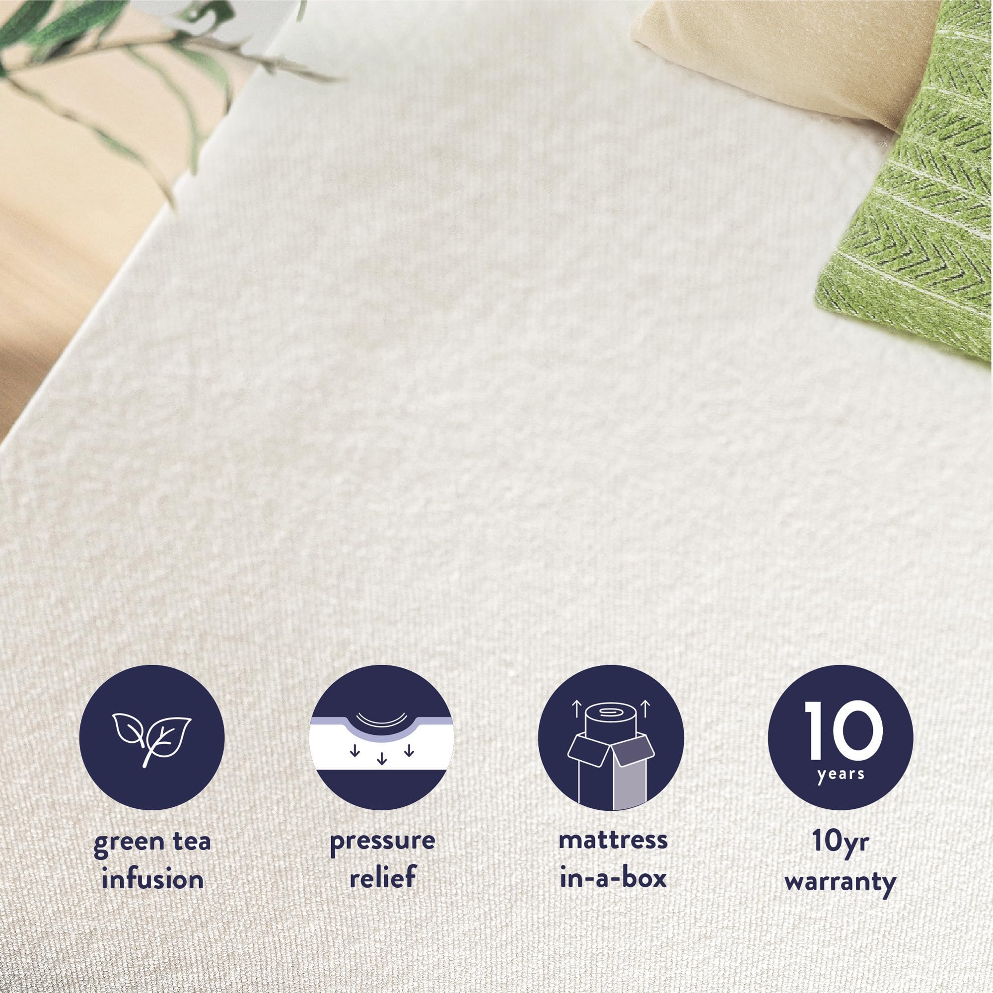 - [Revitalize with Green Tea] – Infused with calming green tea, our memory foam layer rejuvenates your senses while keeping your mattress fresh day after day.