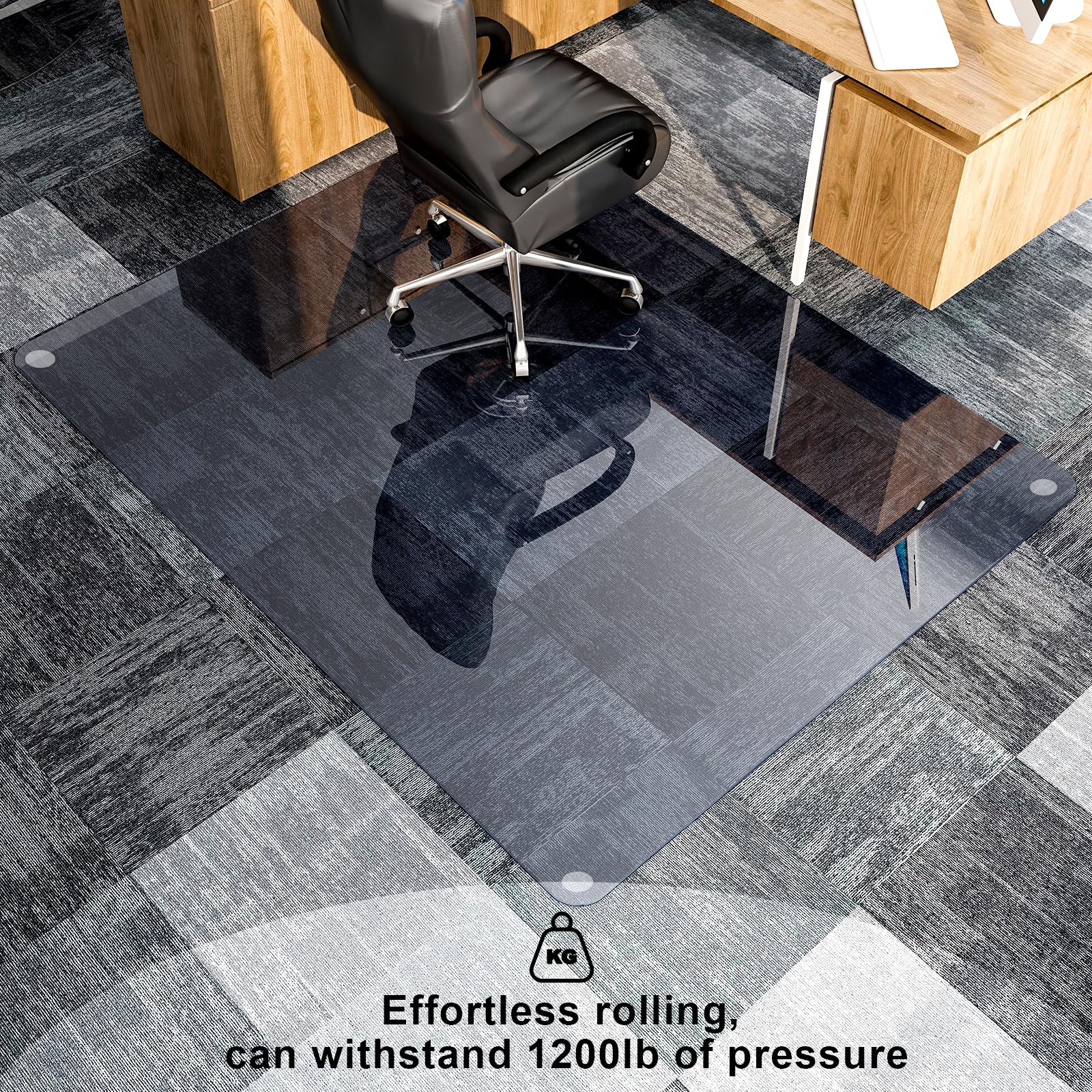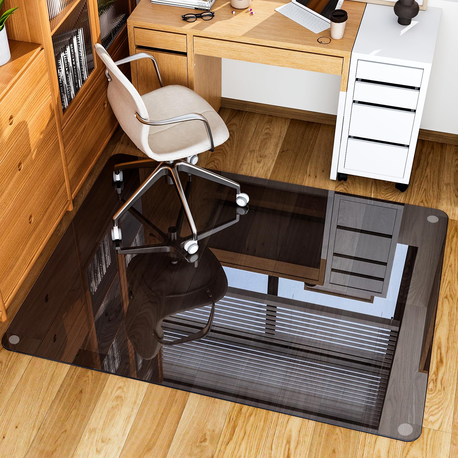 - Large Coverage for Full Protection – The 46″×55″ gray tempered glass chair mat provides extended coverage to protect both carpet and hard floors from scratches, dents, and wheel damage