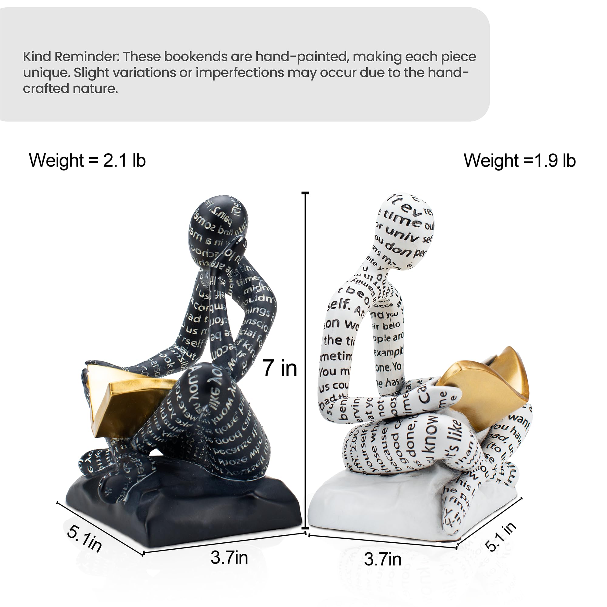 - Non-slip Heavy Bookends: Weighs 4 pounds, each thinker statue is equipped with non-slip pads, ensuring stable support for a large number of books, keeping your collection safely displayed.