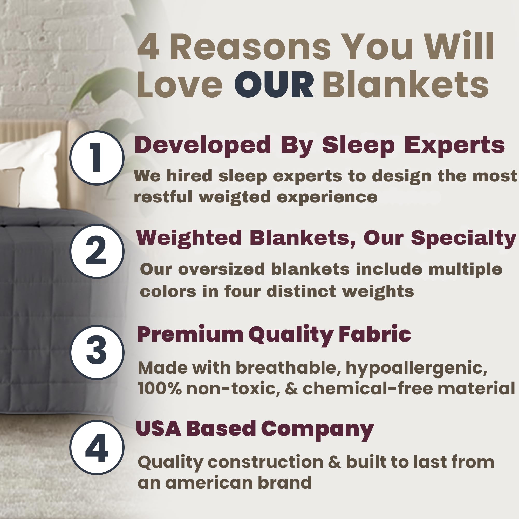 - Oversized Weighted Blanket Coverage: Unlike many weighted blankets that barely reach the edges of the bed, our oversized queen and king weighted blankets are designed with generous dimensions so the blanket drapes naturally over the sides and foot of the bed for full coverage