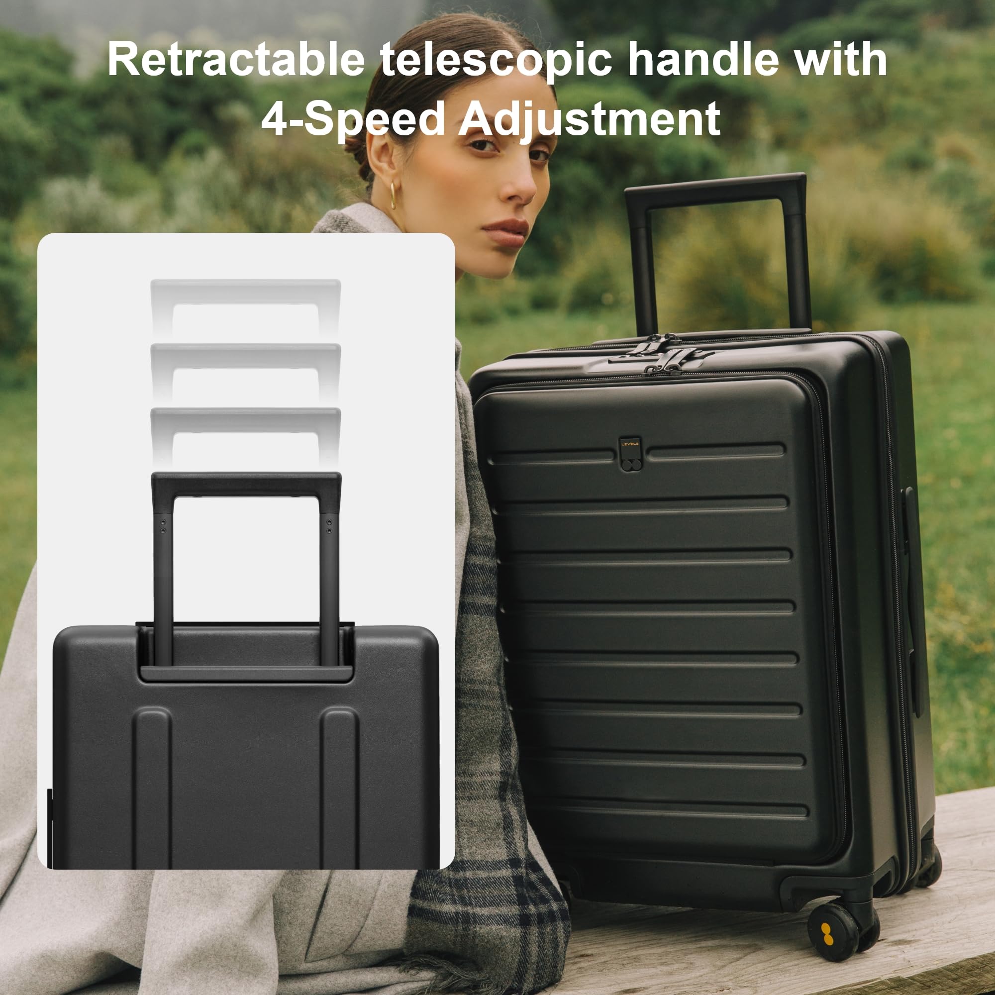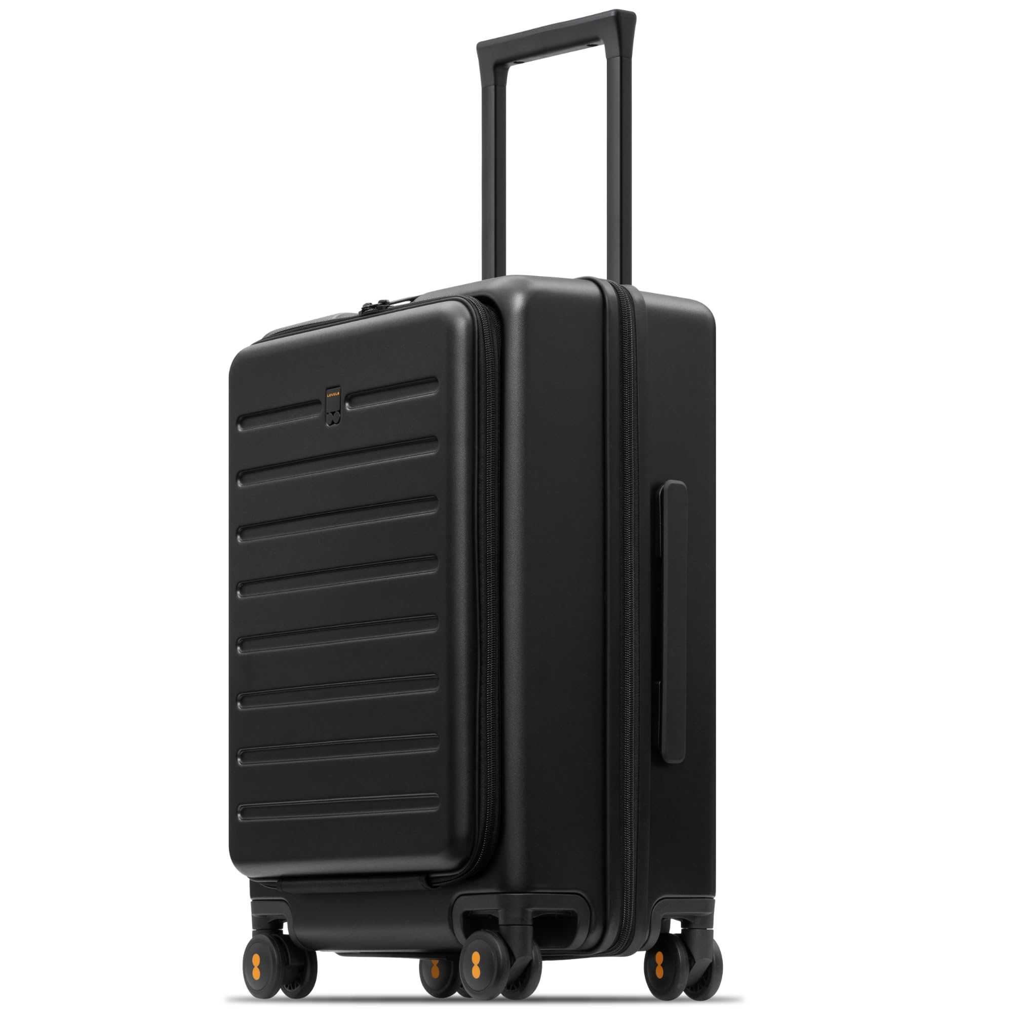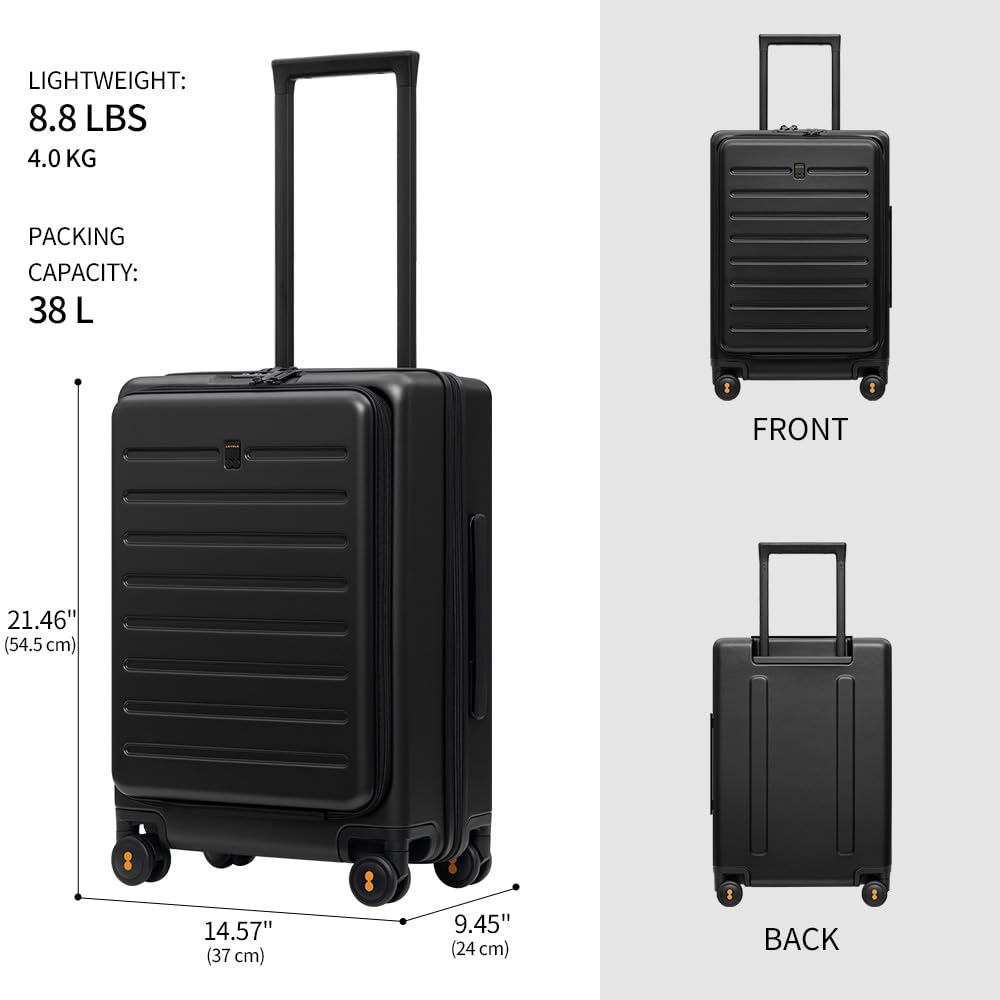 LEVEL8 Road Runner Carry On Luggage with Front Compartment, 20 Inch Lightweight Hard Shell Suitcases with Wheels Airline Approved, Tsa Locks for Luggage, Black
