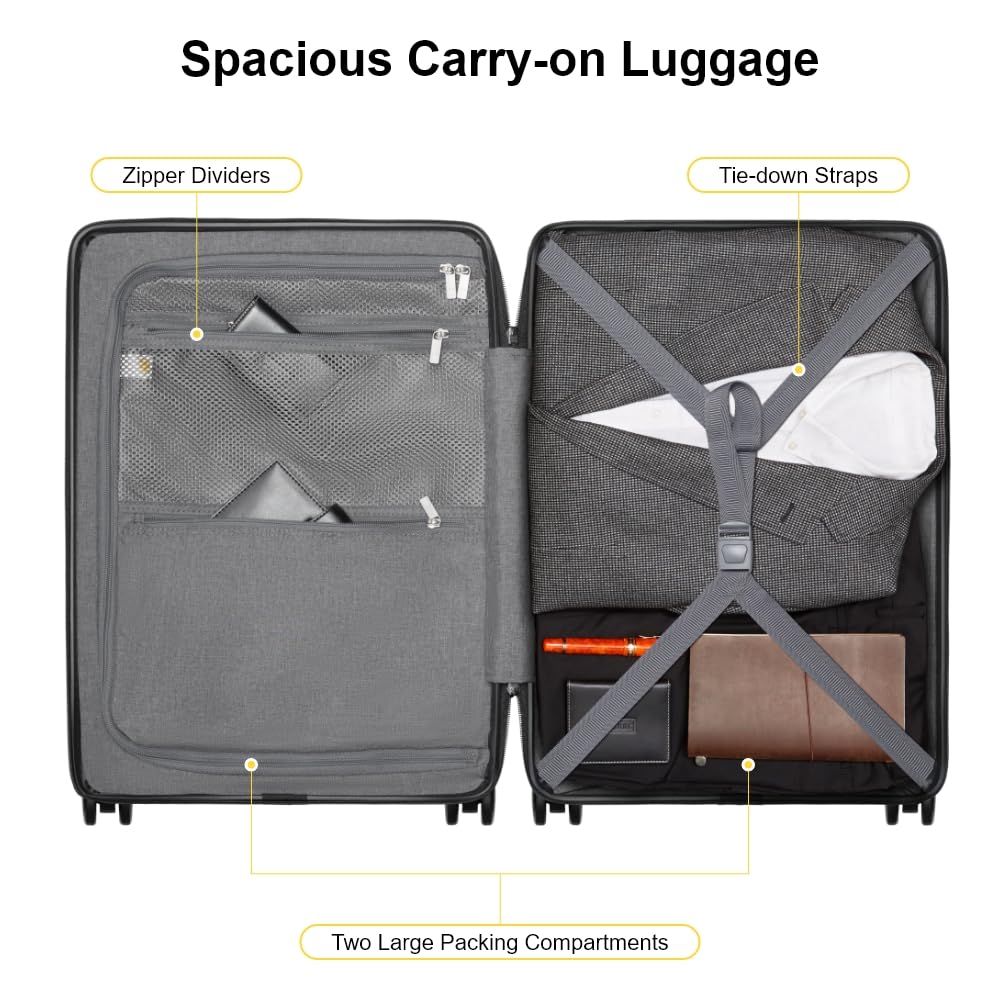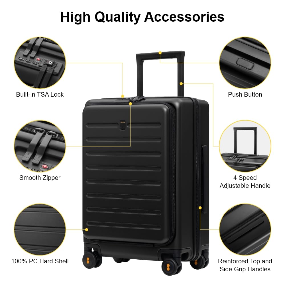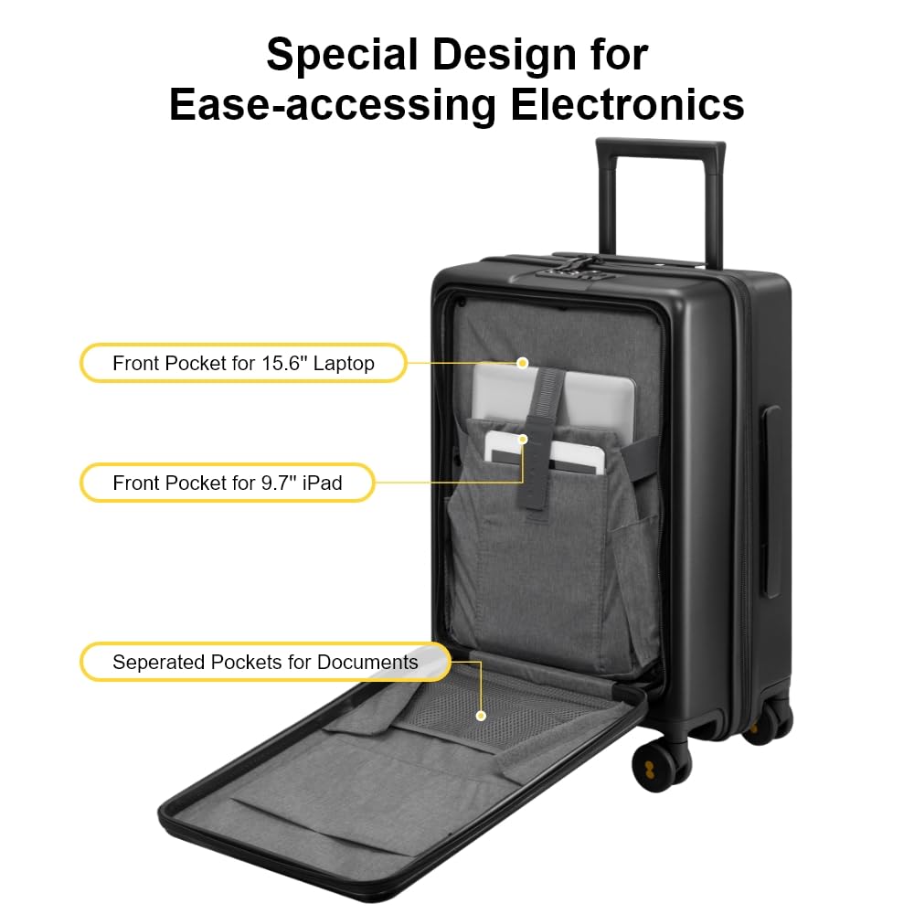 • Front Opening Pocket: The carry-on can accommodate a 15.6-inch laptop and allows quick access to essential electronics and other important items, meeting security check or transfer needs (The main compartment space will be smaller when the front pocket is full)