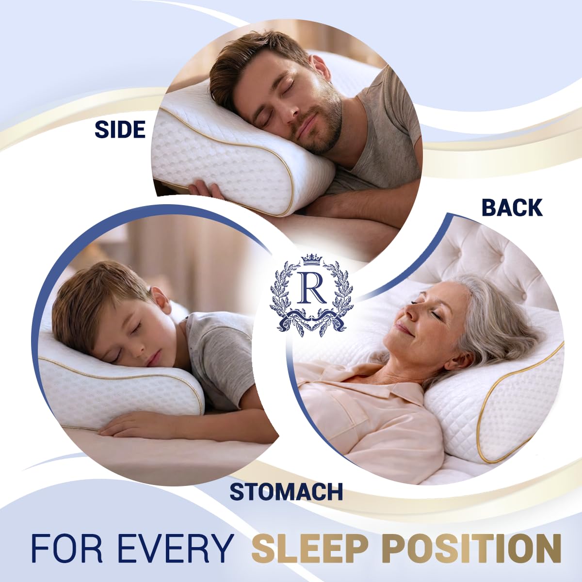 - BEST SPINAL ALIGNMENT – Our luxury cervical firm pillow gives greater resistance under the heaviest parts of the head, and equally supports the lighter, more sensitive neck area. Royal Therapy memory foam pillow helps reduce tossing, turning and discomfort. It allows your muscles to relax properly offering natural spinal support to your body, adjusting to your unique shape promoting a deep restful sleep.