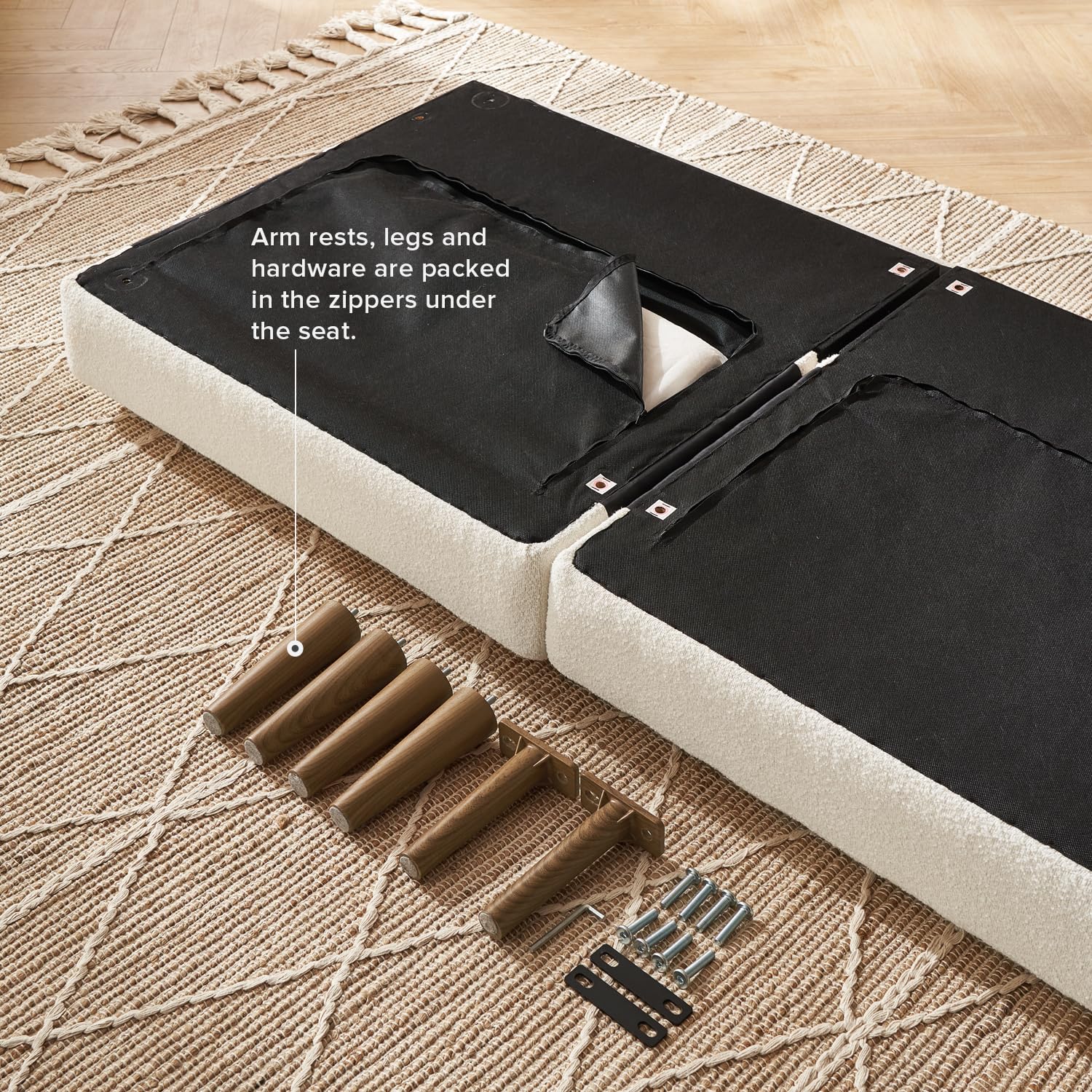 mopio 76.4″ Futon Sofa Bed, Couch, Loveseat, Sleeper Sofa, Mid Century Modern Futon Couch, Sofa Cama, Couches for Living Room (Aaron, Pearl White Boucle)