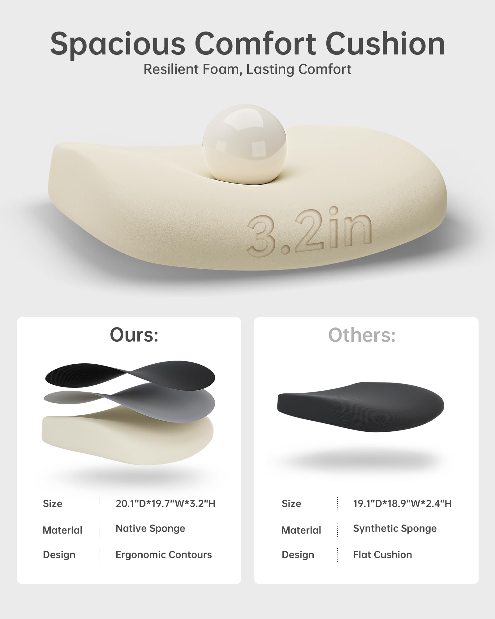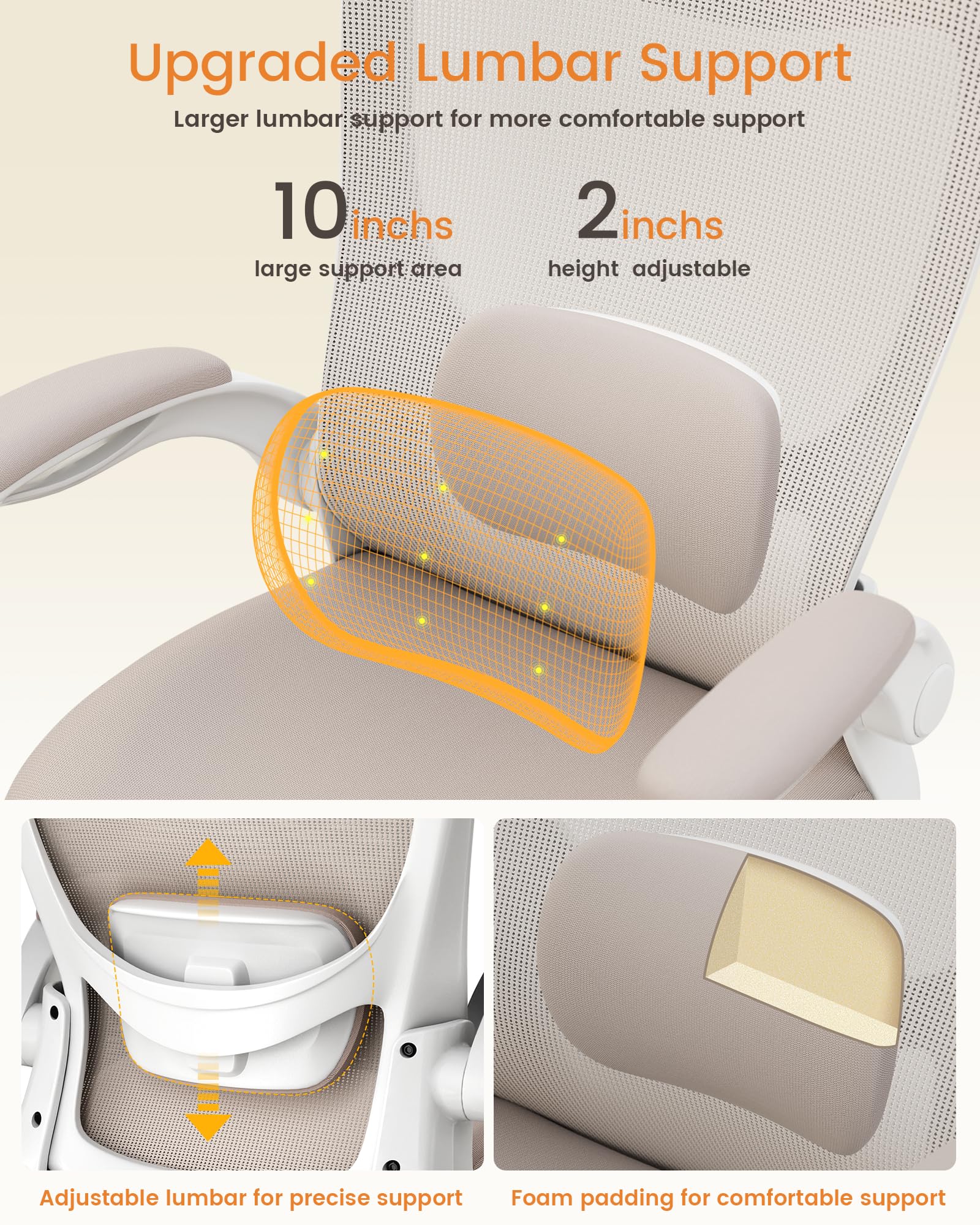 - 【Enhanced Lumbar Support】This office chair features a large and adjustable lumbar support cushion filled with thick sponge to cradle your lower back and help you maintain a comfortable posture for long hours of work. It also has an S-shaped ergonomic backrest that aligns with your spine and reduces pressure and muscle fatigue.
