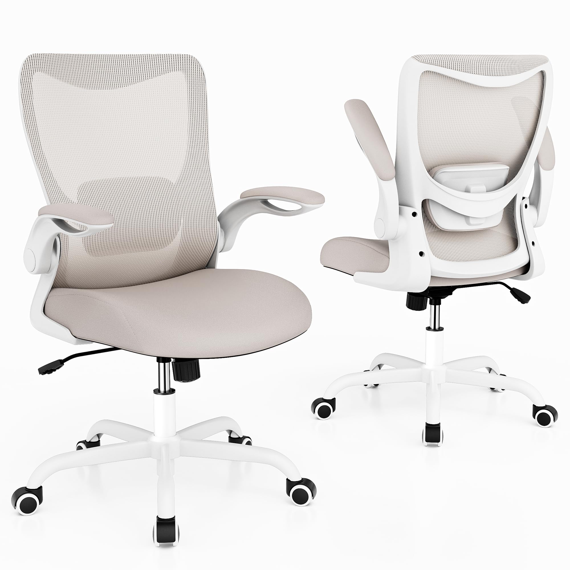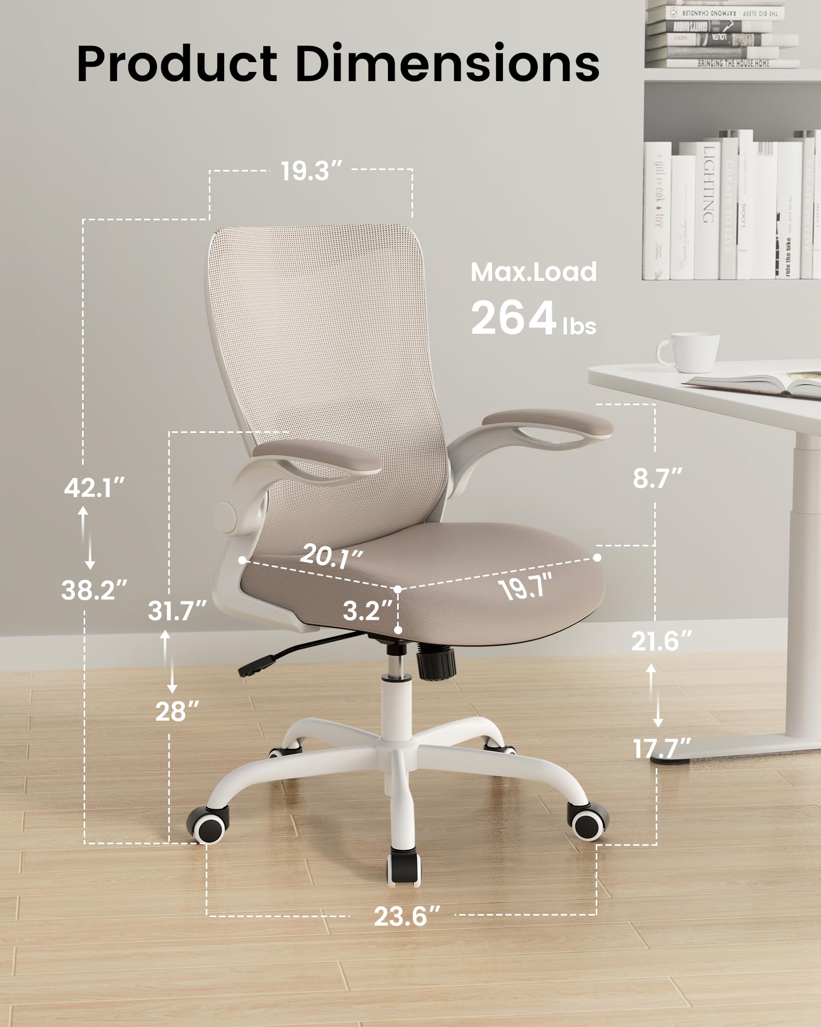 - 【Space Saving】The armrests of this desk chair can be flipped up 90° to fit different needs and save space. You can slide the chair under the desk when not in use. The armrests are contoured to match your arms’ shape and have soft padding to protect your wrists and elbows. The computer chair can be adjusted in height by 3.74 inches and swivel 360° for convenience.