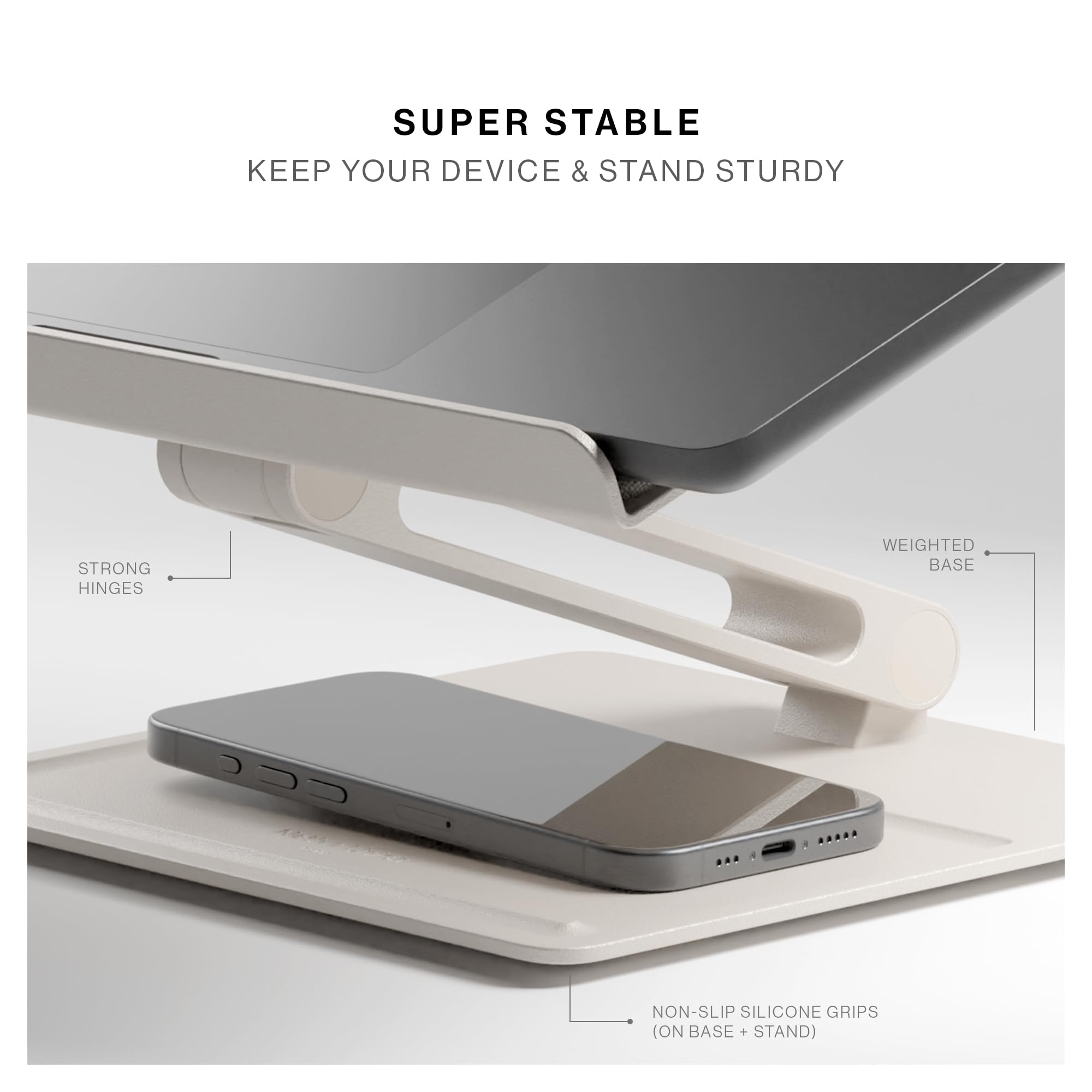 - STABLE: Heavy metal base, non-slip silicone grips, and strong hinges ensure your laptop is held securely and the stand is always stable.