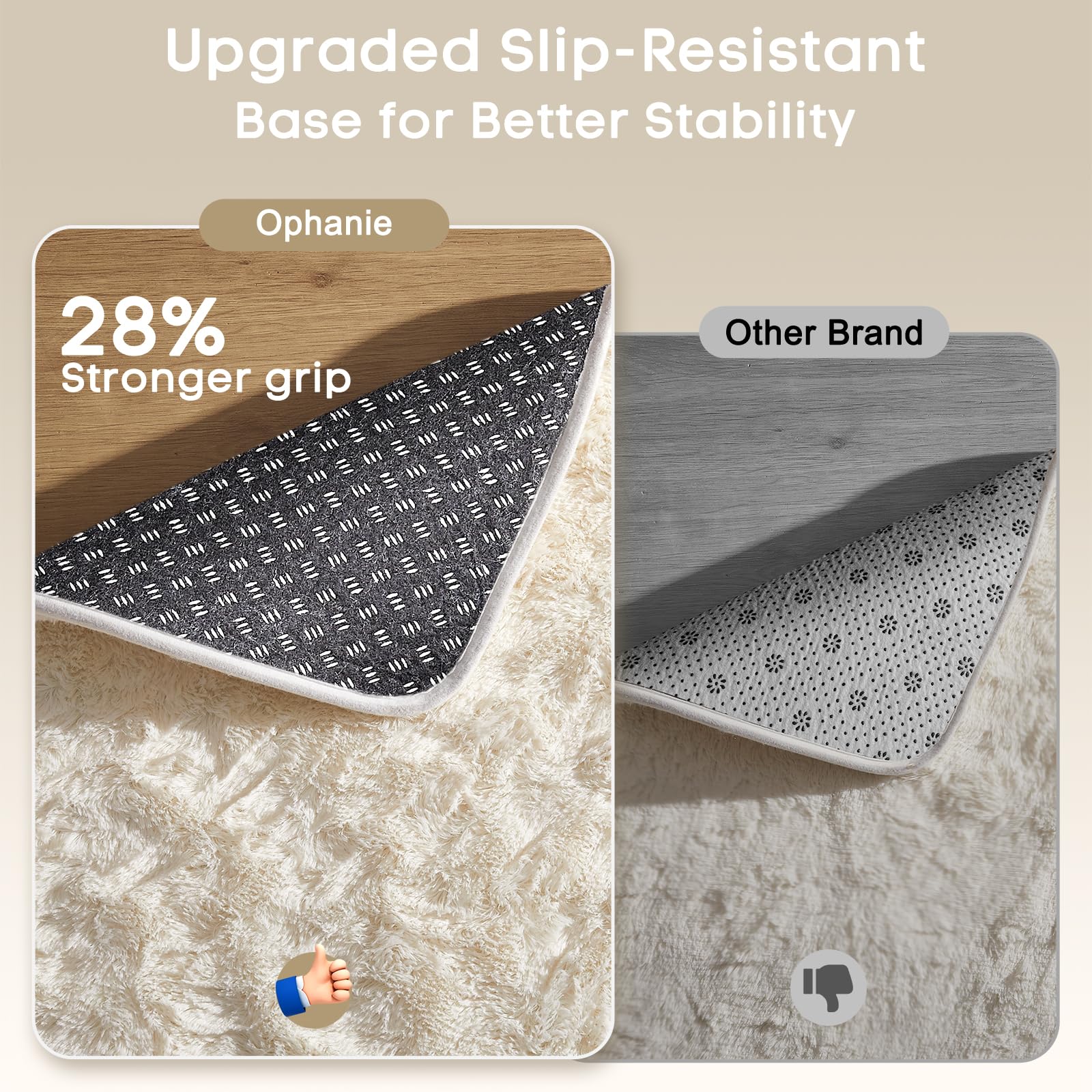 • Ultra Soft & Non-slip: Featuring a shaggy carpet surface, the Ophanie soft area rug is highly soft with a high-density sponge interlayer. This rug effectively reduces shedding, and the non-slip bottom with small, durable anti-slip dots enhances friction to prevent sliding.