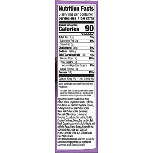 • PROTEIN BARS: Every delicious 90 calorie chocolate chip flavored protein bar has 10g of protein; A good source of protein