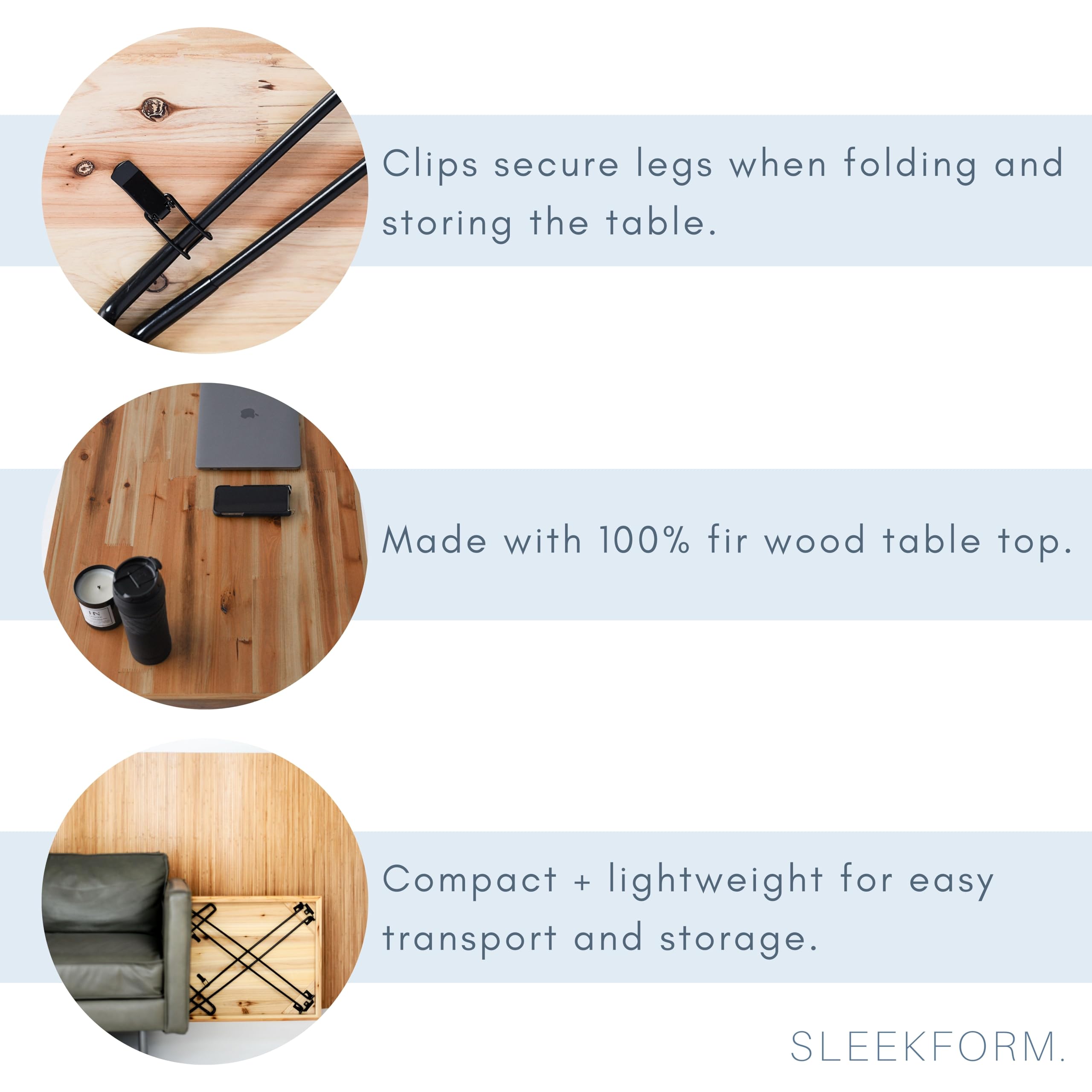Sleekform Wood Folding Table – Portable Folding Desk – No Assembly Easy Fold Desks for Small Spaces – Space Saving Collapsible Computer Tables for Work, Writing, Crafts