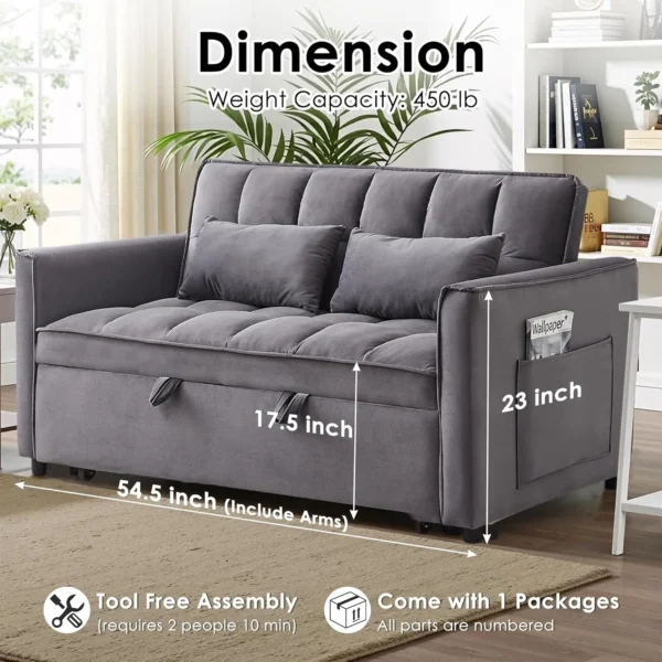 This modern convertible sleeper sofa bed is designed for multifunctional living spaces, offering both comfort and practicality in a compact form. It is ideal for apartments, guest rooms, studios, and living rooms where space-saving furniture is essential. With a smooth pull-out design and adjustable backrest, it transforms easily from a stylish loveseat into a comfortable sleeping surface.