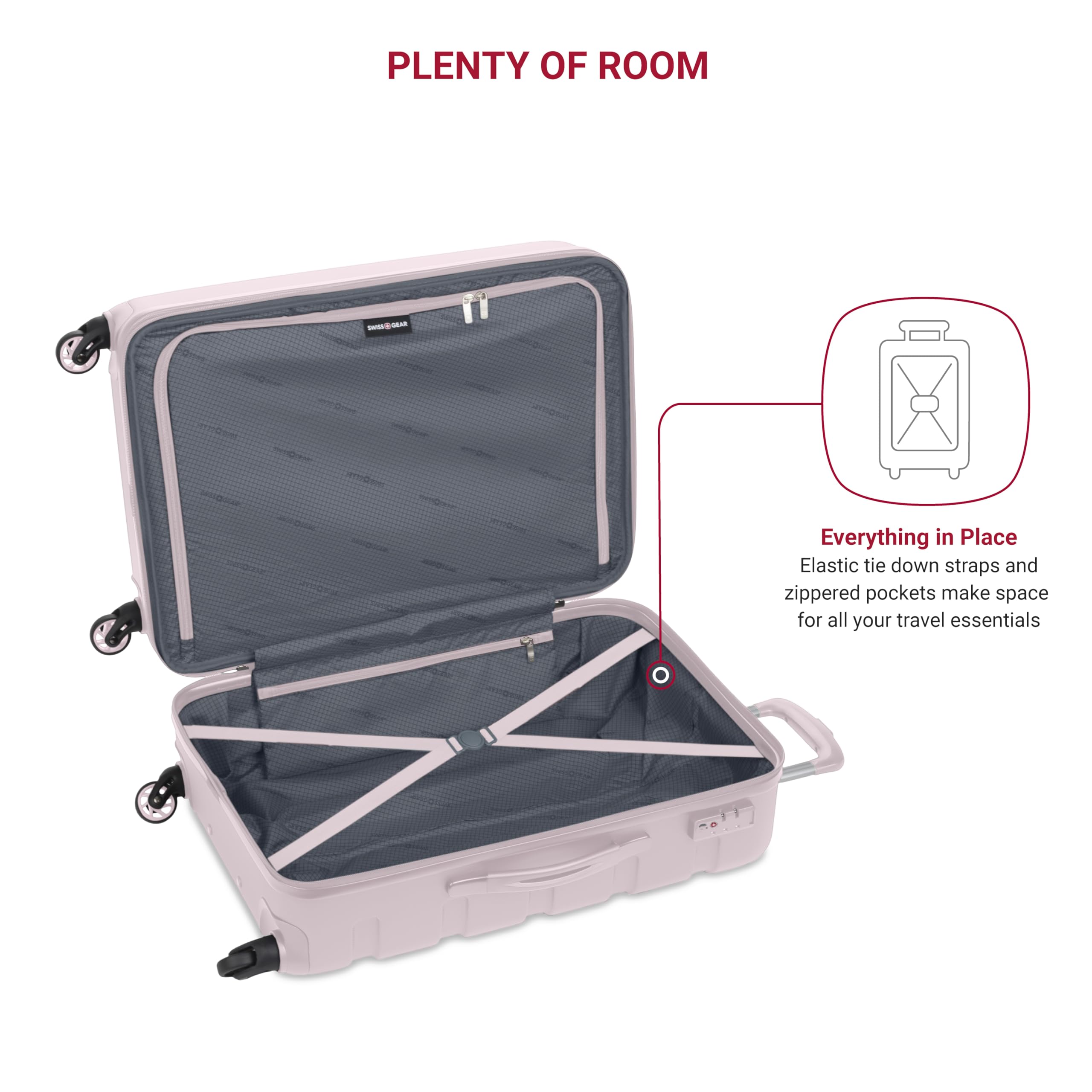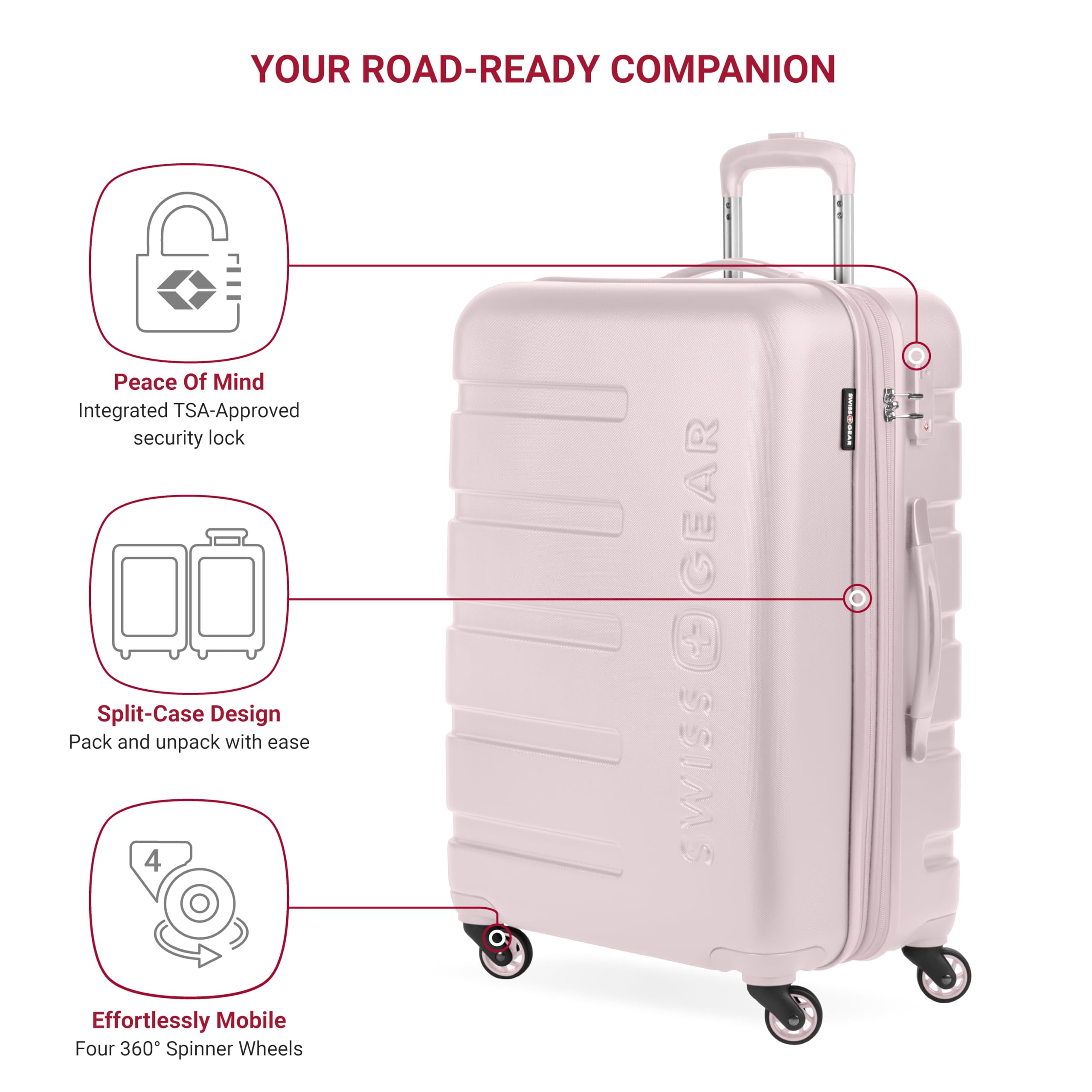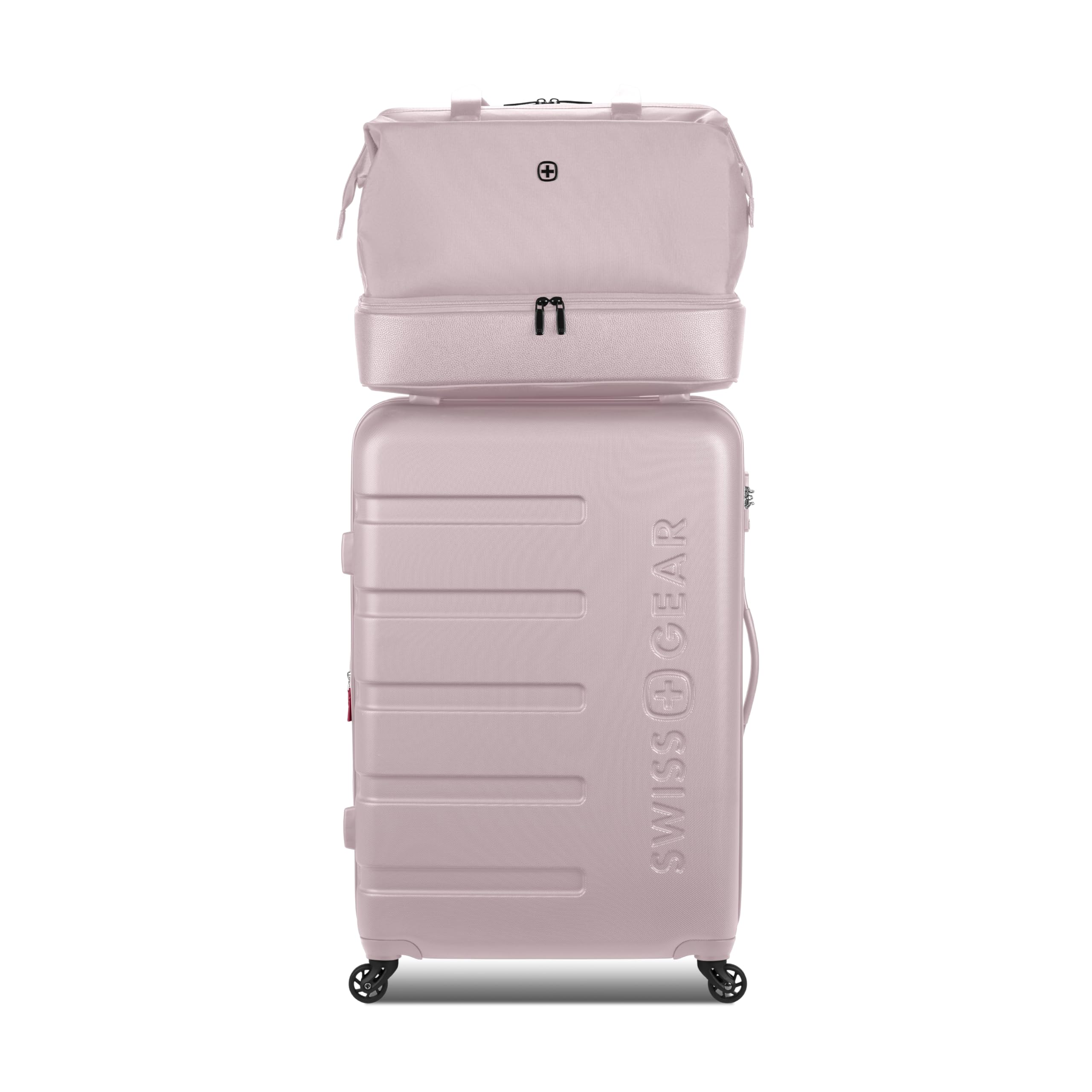 Travel in style and confidence with the SwissGear Signature Expandable Hardside Luggage Set. Designed for durability and modern convenience, this set includes a versatile Weekender Tote and a 27” large checked suitcase—perfect for any travel itinerary. The Weekender Tote features a wire-frame opening for easy packing, a key hook, a trolley strap for secure stacking, and a zippered bottom compartment ideal for shoes or extra essentials. The hardside suitcase boasts an almost indestructible split-case design, offering an organized interior with tie-down straps, a zippered lid pocket, and a spacious packing compartment to keep your belongings secure. With smooth four-wheel 360-degree spinner mobility, a premium steel locking telescopic handle, and expandable packing capacity, this set ensures stress-free travel. For added security, the hardside suitcase includes a built-in TSA-approved three-dial combination lock. Whether you’re traveling for business or leisure, this stylish and functional luggage set is designed to keep you organized and ready for any adventure.