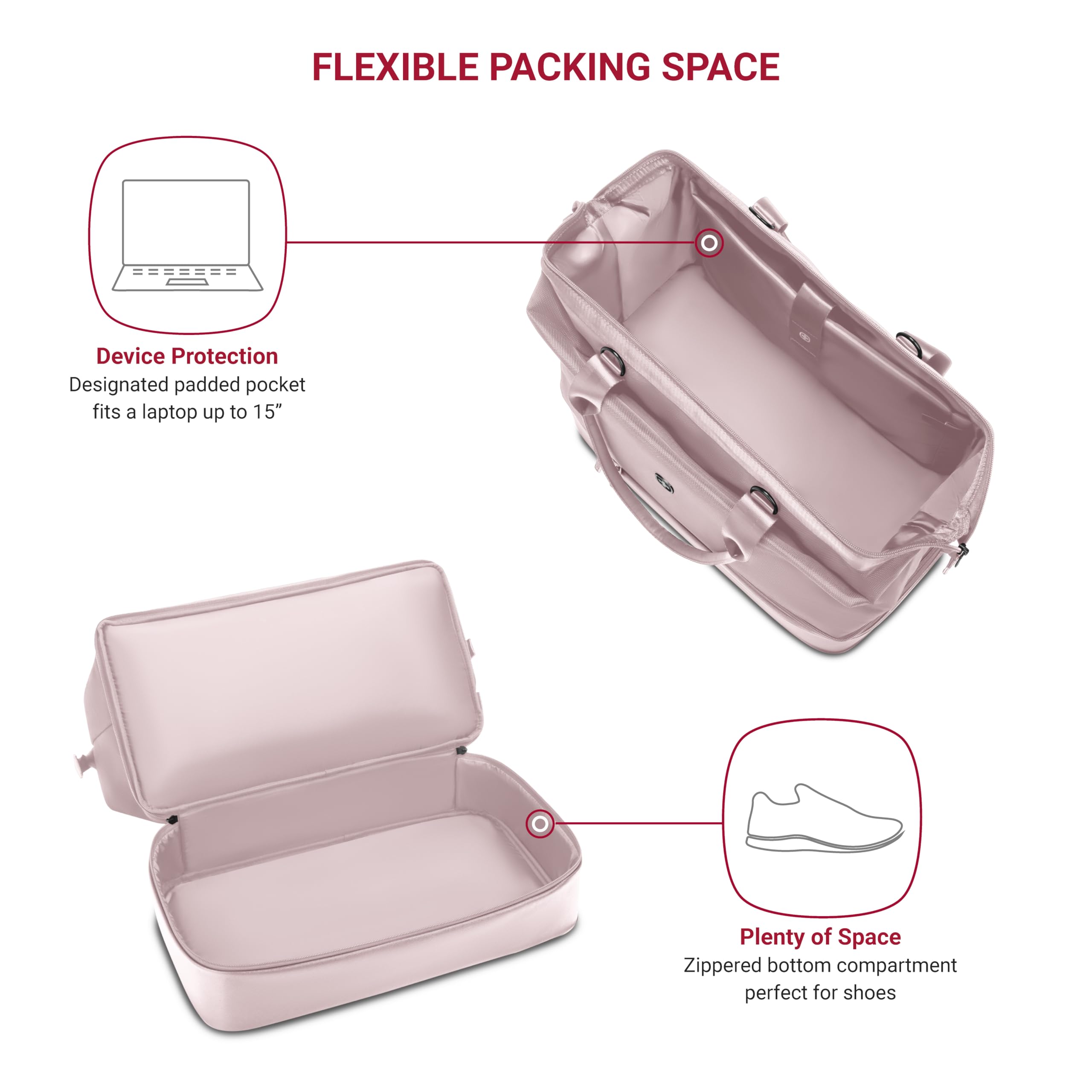 - 2-Piece Weekender & Expandable Luggage Set: This versatile set includes a stylish Weekender Tote and a 27-inch expandable suitcase, perfect for two-week trips. The Weekender features a wire-frame opening for easy packing, a key hook, a trolley strap for secure stacking, and a zippered bottom compartment ideal for shoes or extra essentials.