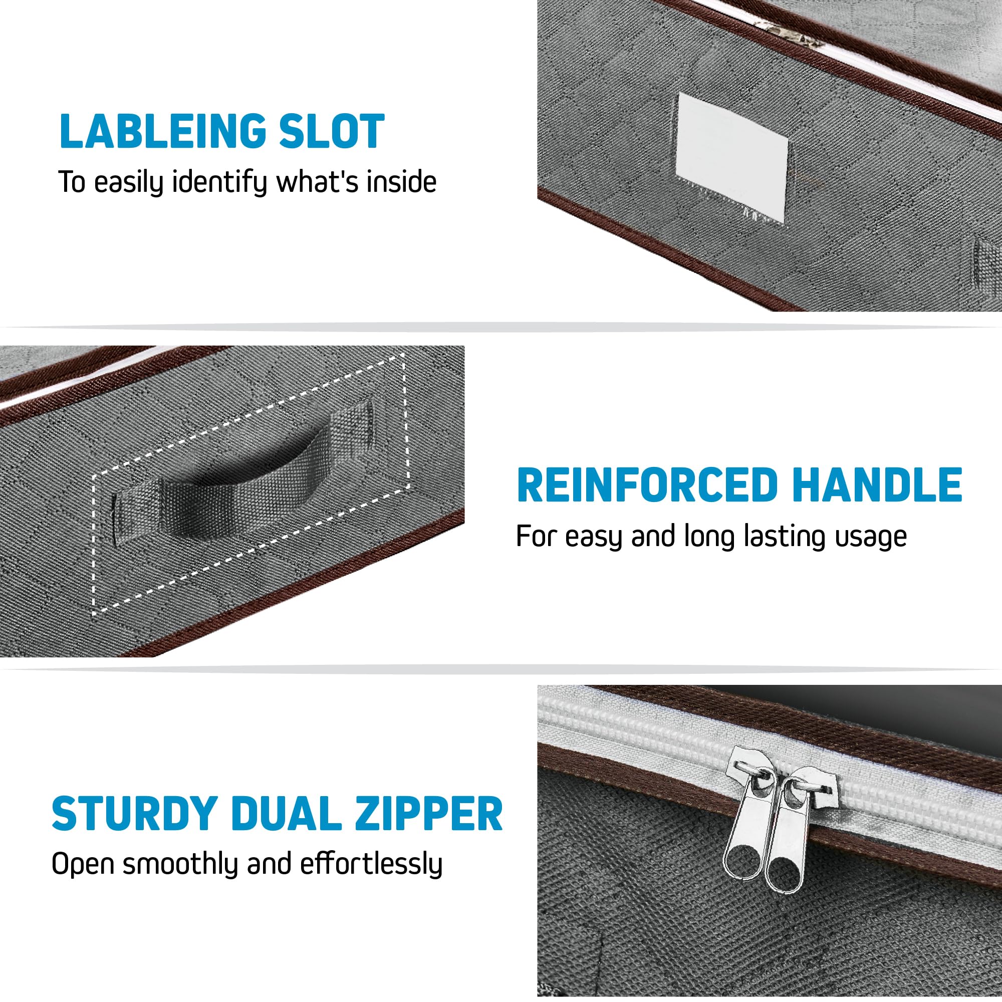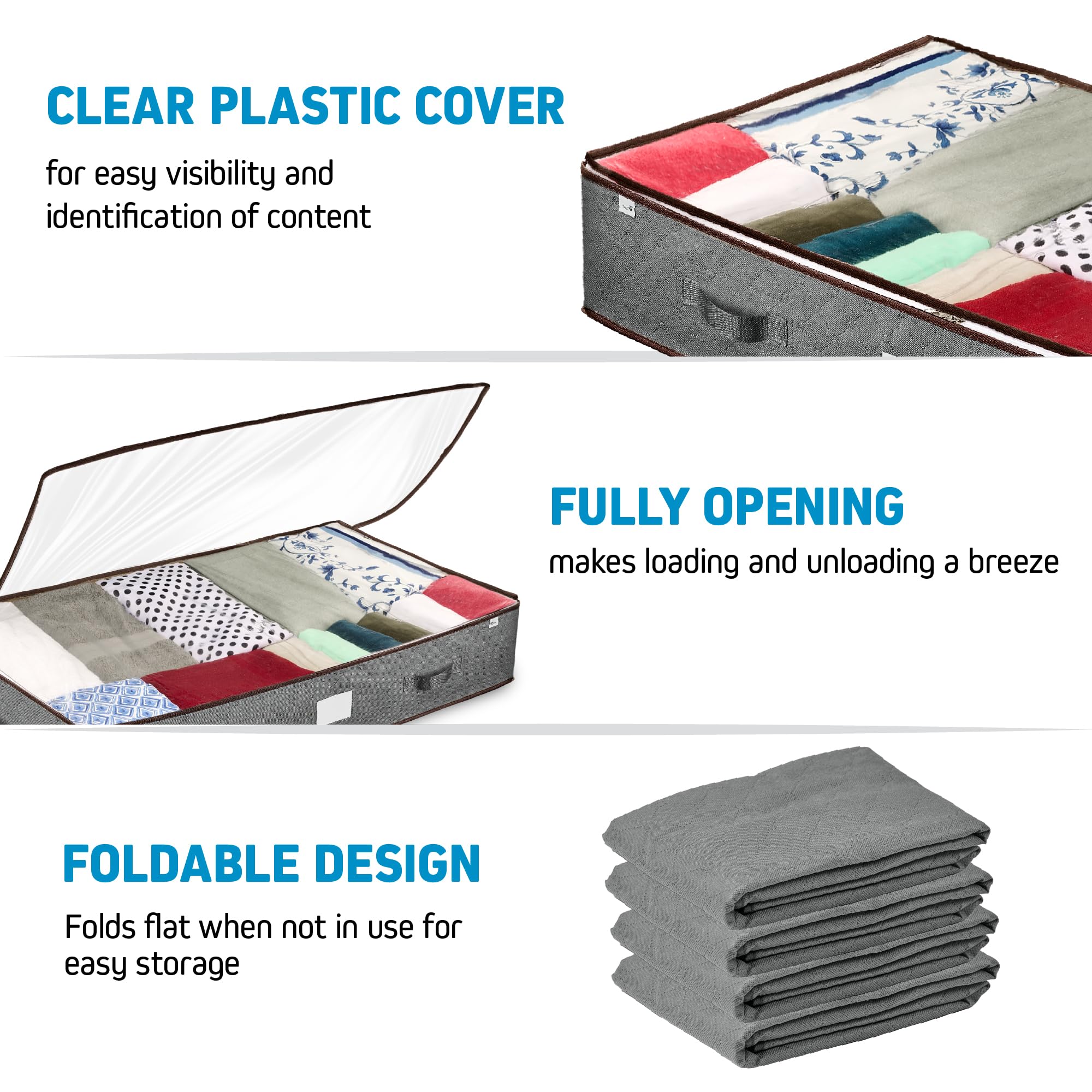 • THOUGHTFUL DESIGN – Our clothing storage box set boasts a reinforced handle for easy maneuvering and sliding under any bed. The see-through plastic cover ensures that you’ll never lose track of what’s inside.