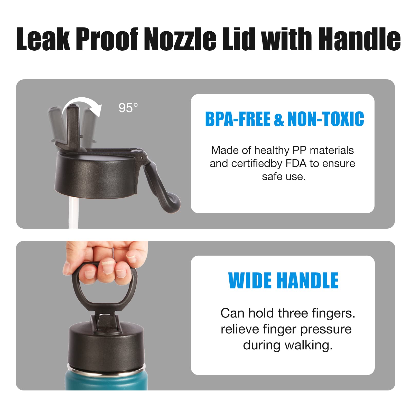 - 【Lid with Wide Handle】After market research, we redesigned this cup lid. 1. The thickened version of the waterproof rubber ring is used to make the seal more secure. 2. Our lids handle have been improved.Able to hold three fingers, relieve finger pressure while walking. 3. The straw is made of soft PP material to ensure that it will not break after long term use