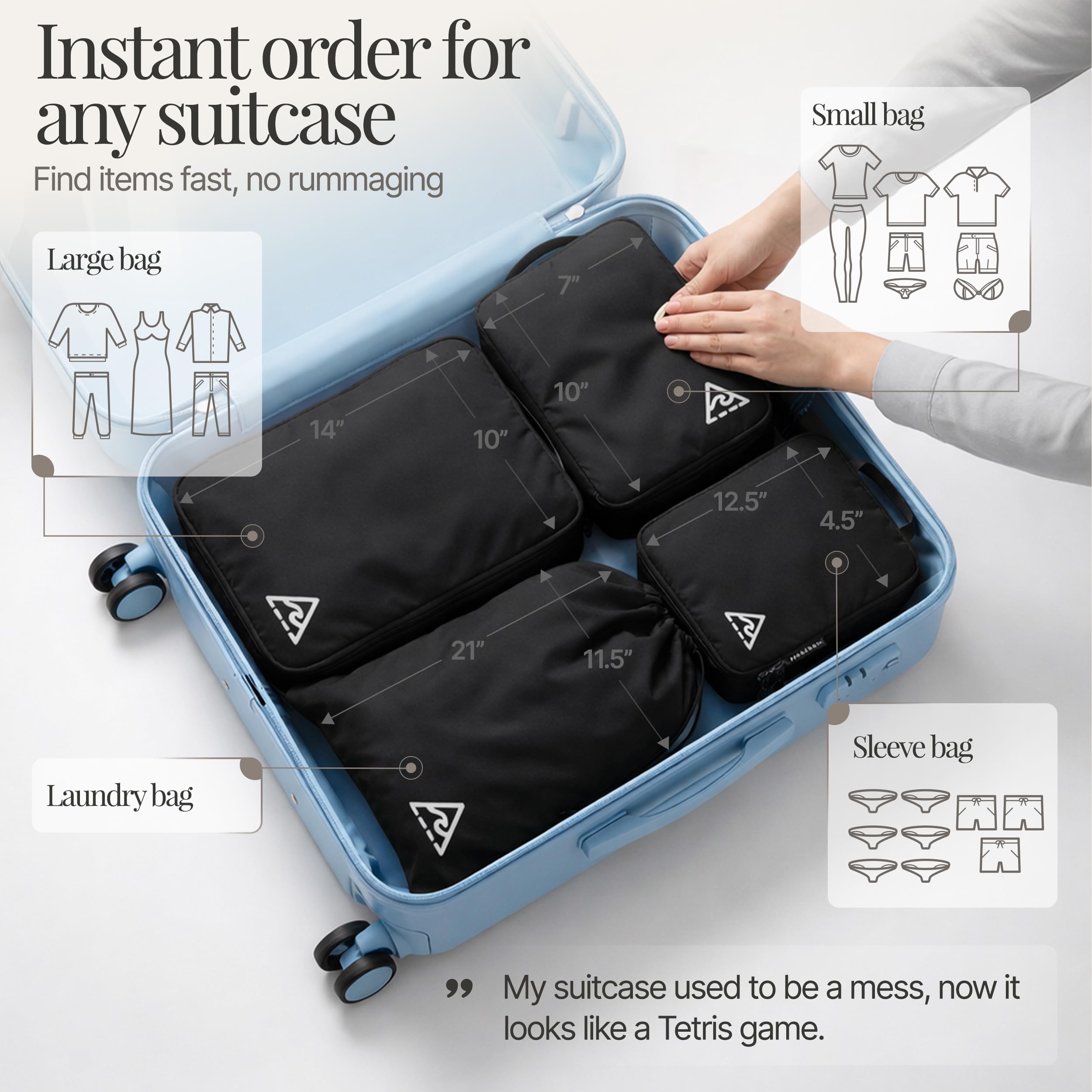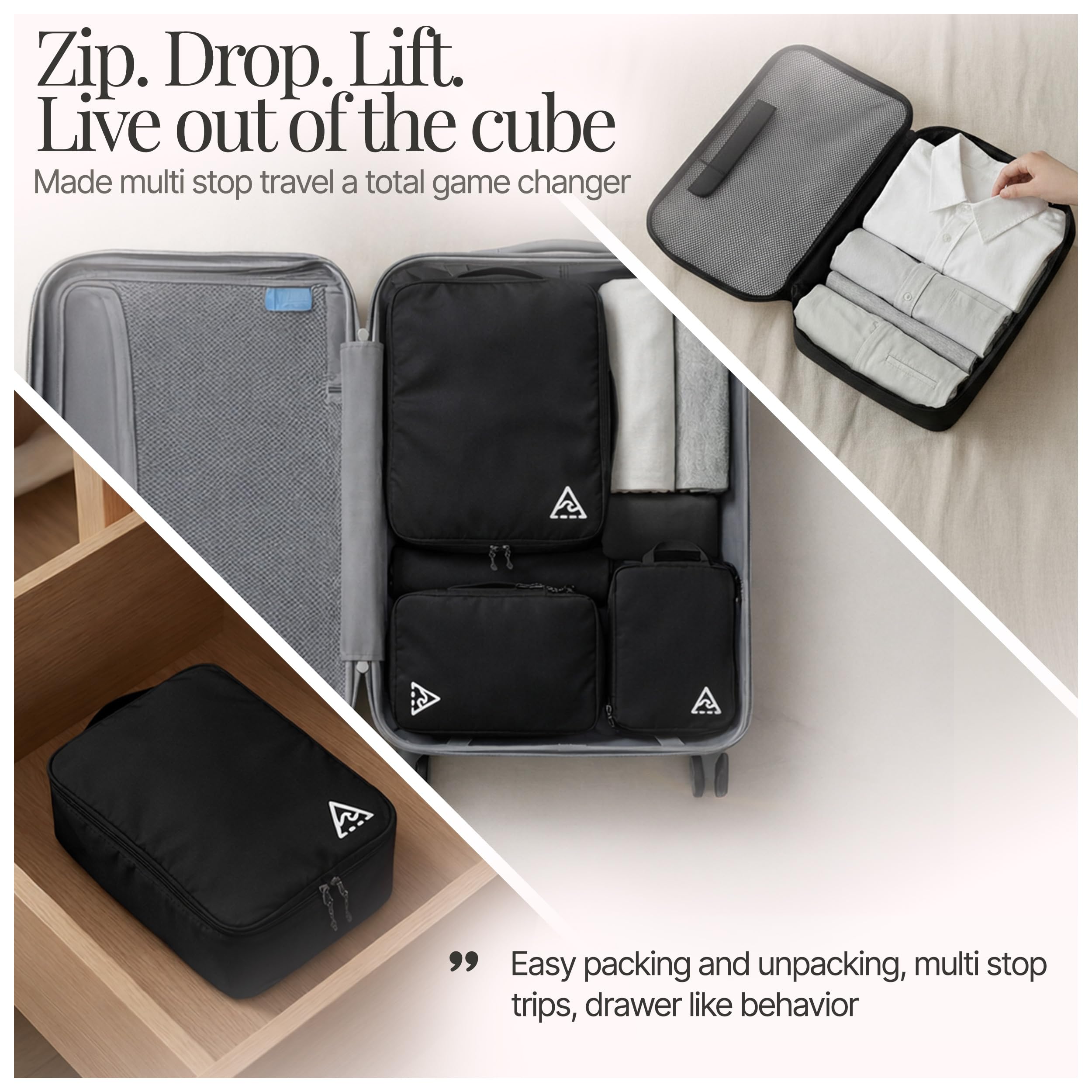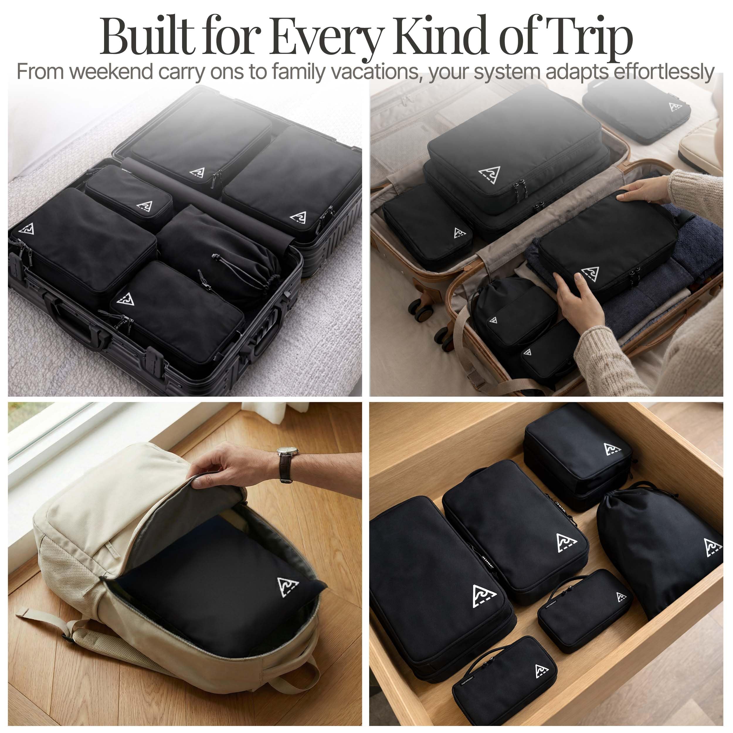 • STAY STRUCTURED ON THE GO These travel packing cubes compression act as essential travel accessories turning every trip into a calm, seamless experience. Our luggage organizer bags keeps items separated and visible while helping you stay organized
