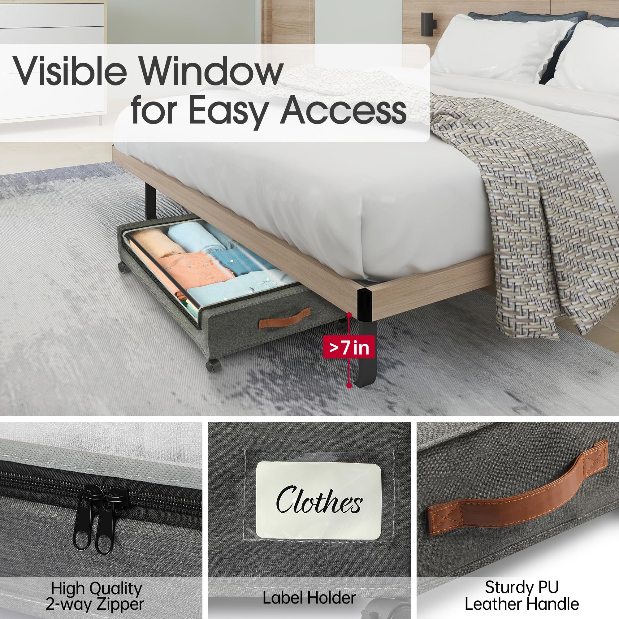 - Clear Window & Label: Our rolling underbed storage bins are equipped with a Clear window, you can clearly see the stored items, say goodbye to the trouble of misplacing items. Additionly, the included label is great for labeling contents, allowing you to quickly identify and find the item you’re looking for without having to open multiple containers or boxes